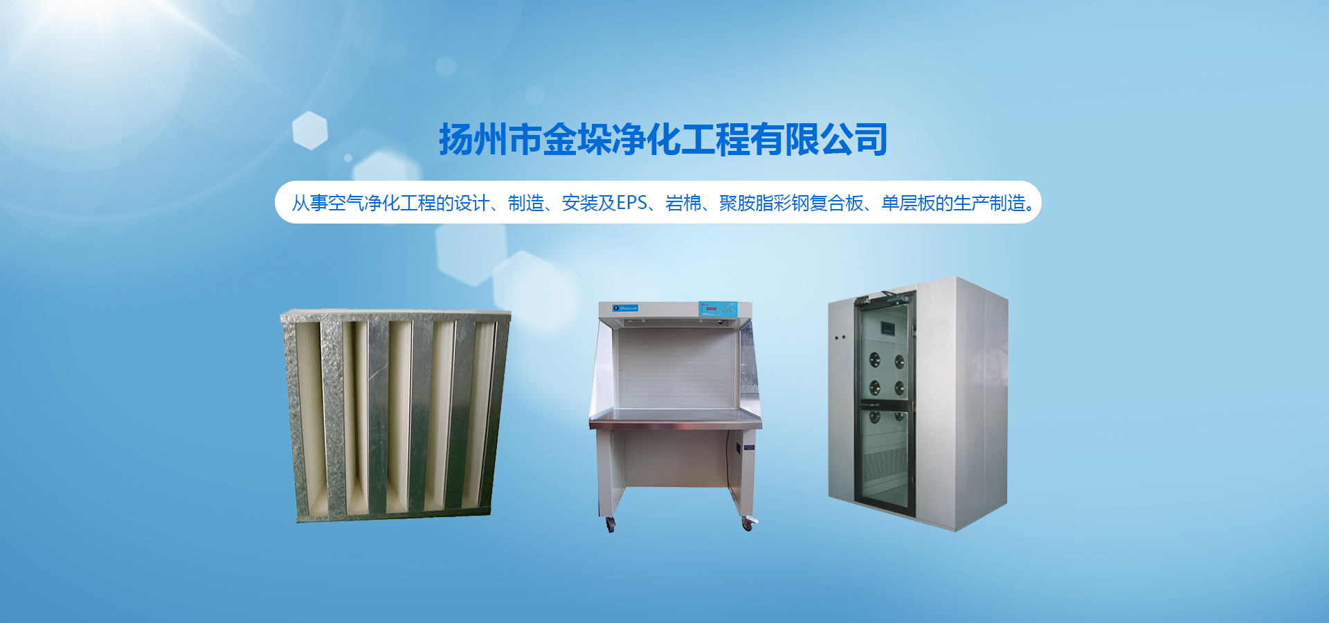 從事空氣凈化工程的設計、制造、安裝及EPS、巖棉、聚胺脂彩鋼復合板、單層板的生產(chǎn)制造